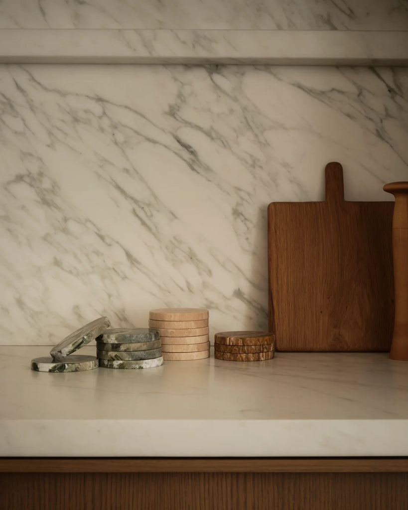 Expertly crafted with marble the Lane Coasters are the perfect accessory for any home. Each coaster is unique, making them a one-of-a-kind addition to your decor. Elevate your entertaining with these stylish and functional coasters.