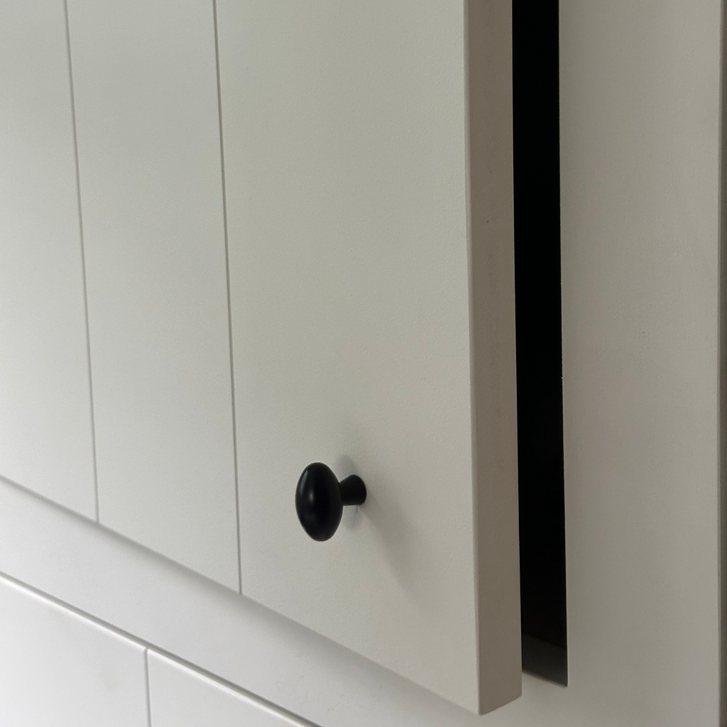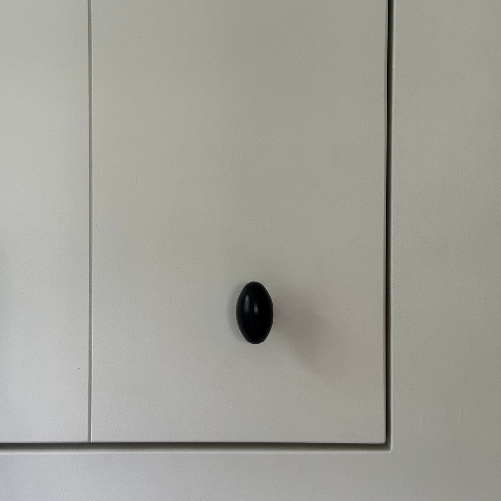 Introducing our latest obsession- The Egg Knob – the perfect blend of style and functionality for your kitchen, vanity or millwork. Crafted with precision and durability in mind, this knob adds a touch of sophistication to any space. Its sleek design and timeless black finish effortlessly complement a variety of décor styles. Elevate your cabinets, drawers, or furniture with this elegant accessory.